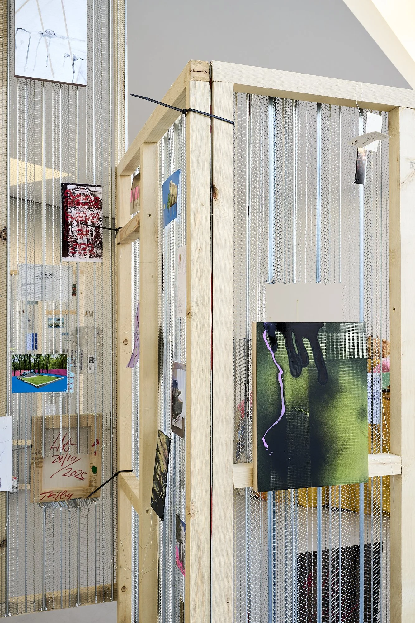 Leni Hoffmann lives in Düsseldorf / Karlsruhe and works in situ. They create site-specific projects that engage with architecture, often unfolding through time-based interventions. Hoffmann graduated as Meisterschüler of Georg Karl Pfahler at the Academy of Fine Arts in Nuremberg. Since 2002, they have held a professorship in painting and graphic arts at the State Academy of Fine Arts in Karlsruhe.