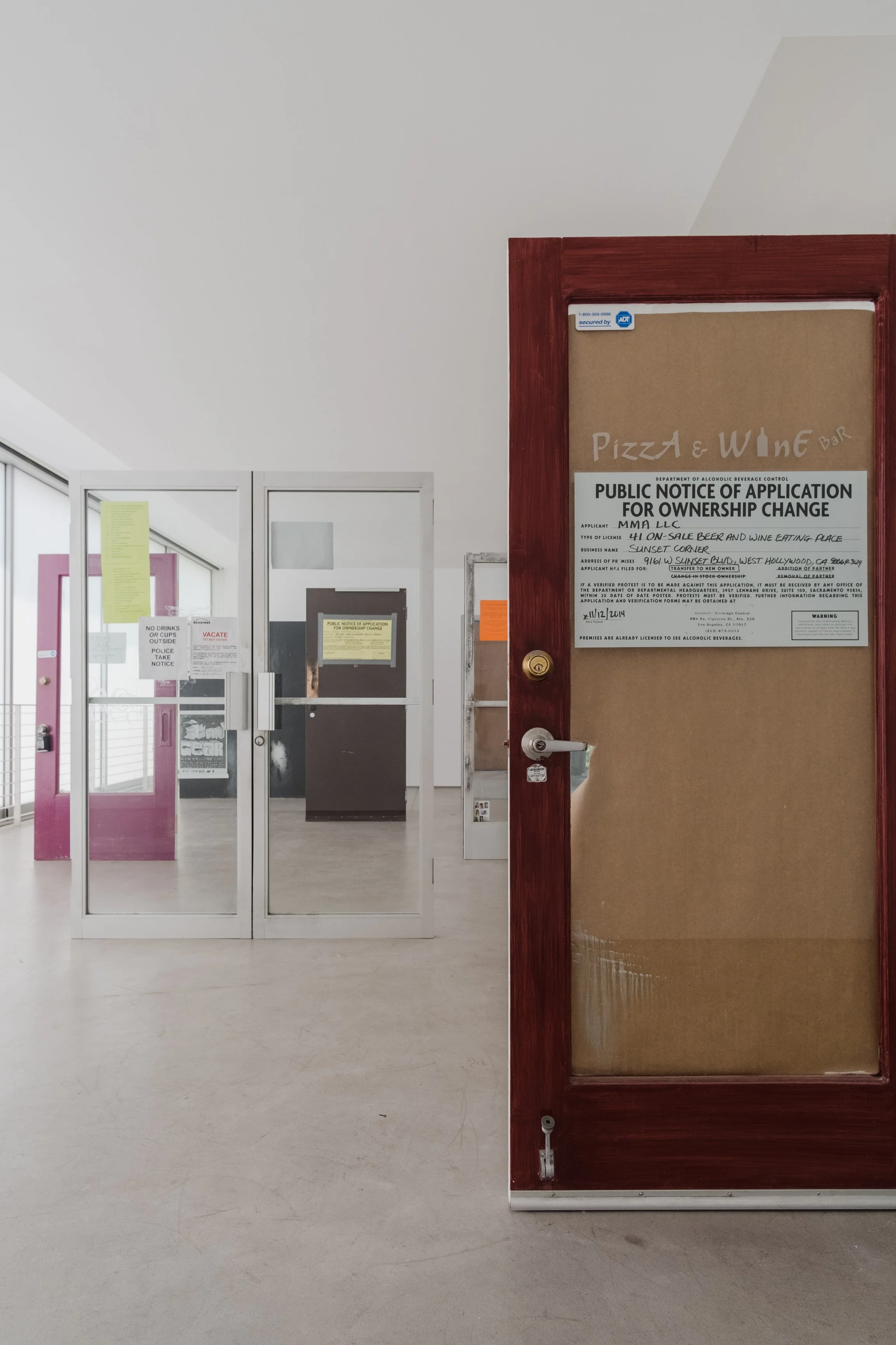 The majority of the doors came from closed establishments in Los Angeles, though some come from other cities like New York. Documentation of the door from a single story building at 107 Norfolk Street–formerly home to Tonic nightclub from 1998-2007, on the Lower East Side of Manhattan–was discovered by the artist while researching the building that the Lisa Cooley Gallery had taken over for an exhibition wherein Connor participated.